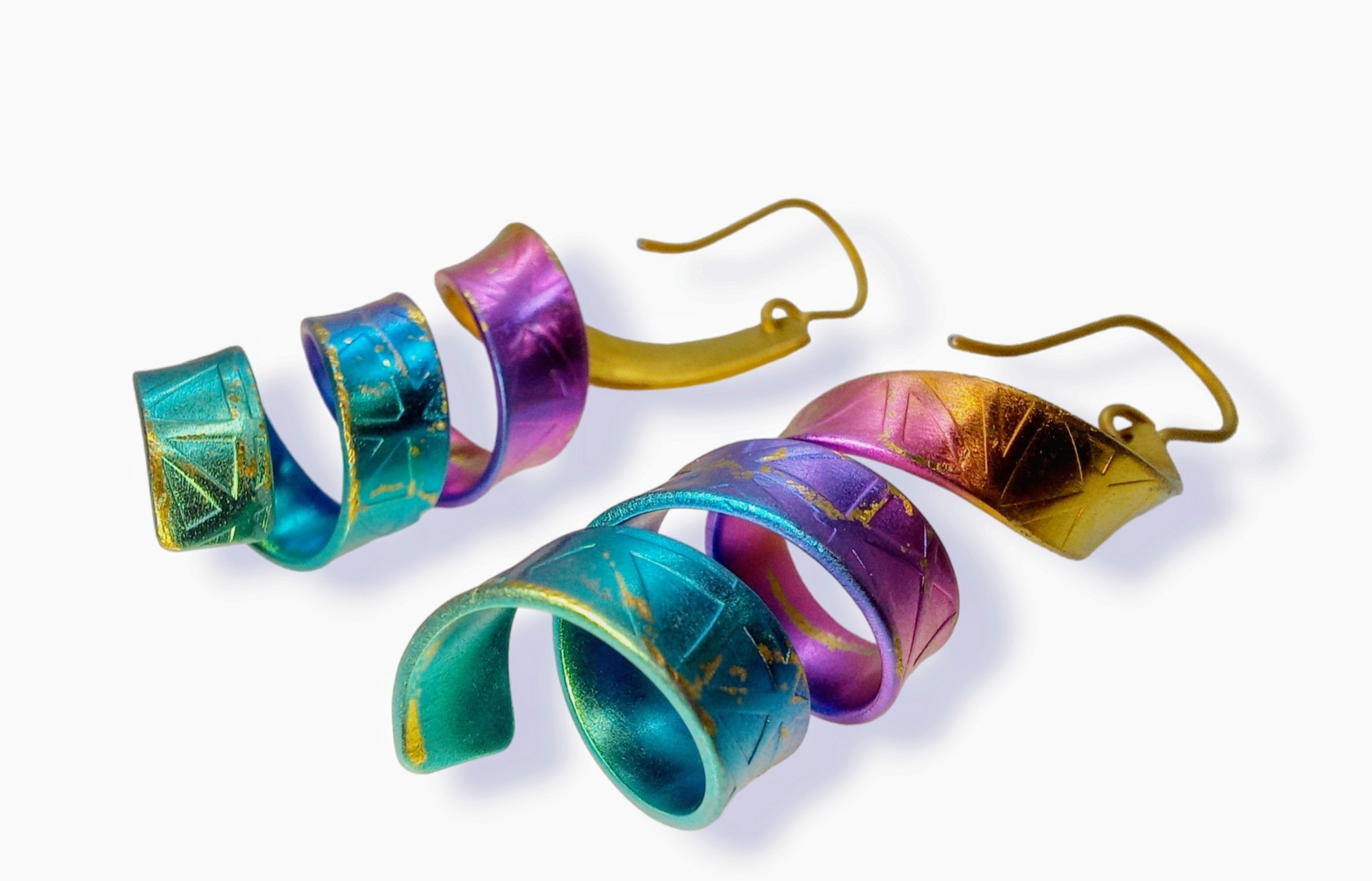 Σκουλαρίκια με πολύχρωμο σπιράλ από τιτάνιο